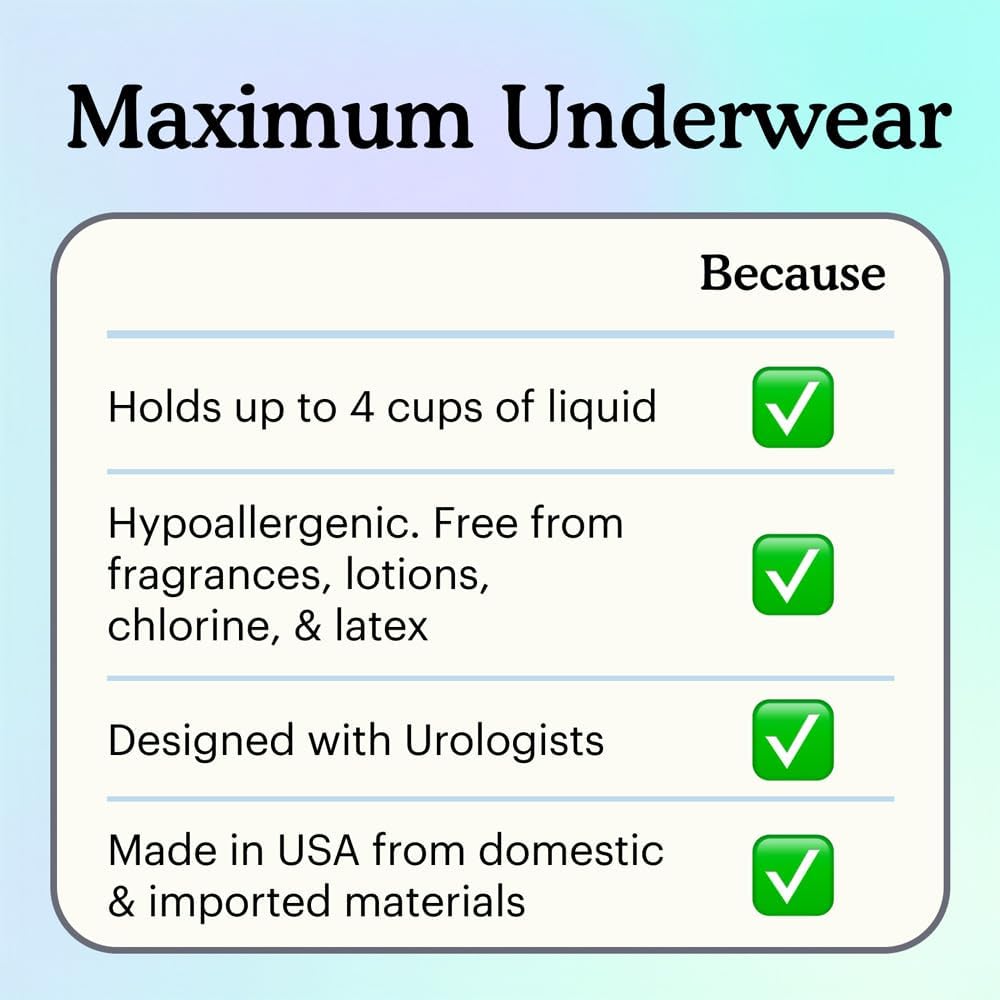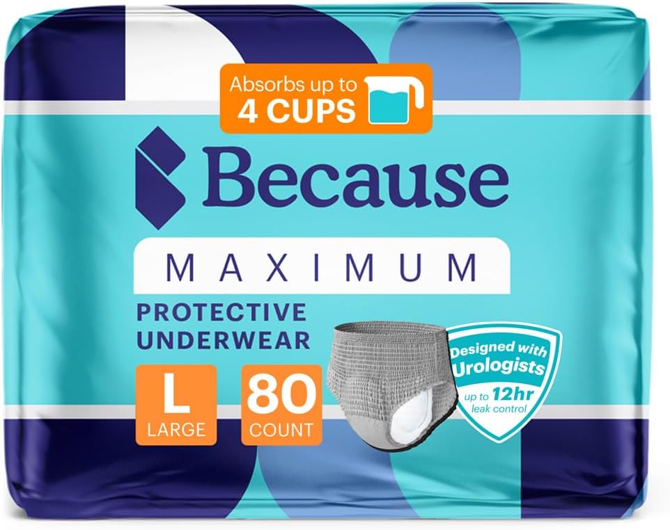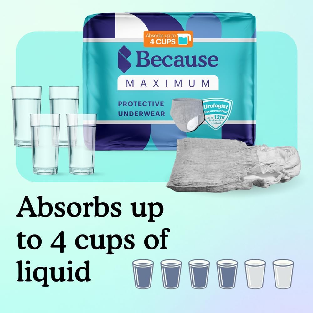 Because Maximum Absorbency Underwear for Men come in S/M–XXL (28–80" waist). Also available: Overnight Absorbency Underwear (6 Cups), Adjustable Tabbed Briefs, Men’s Incontinence Guards, and 2 levels of booster pads for extra protection.