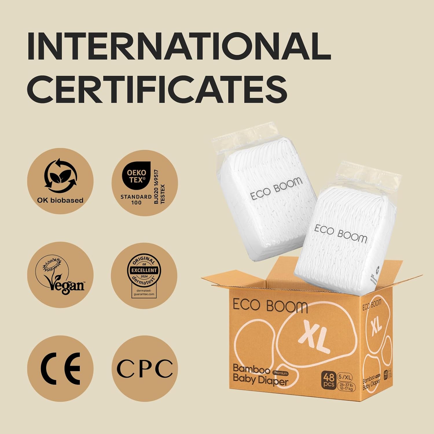 ECO BOOM Diapers, Viscose from Bamboo Diapers, Natural Soft Disposable Nappies for Infant, Size 4 Suitable for 20 to 31lb (Large - 60 Count) quantity