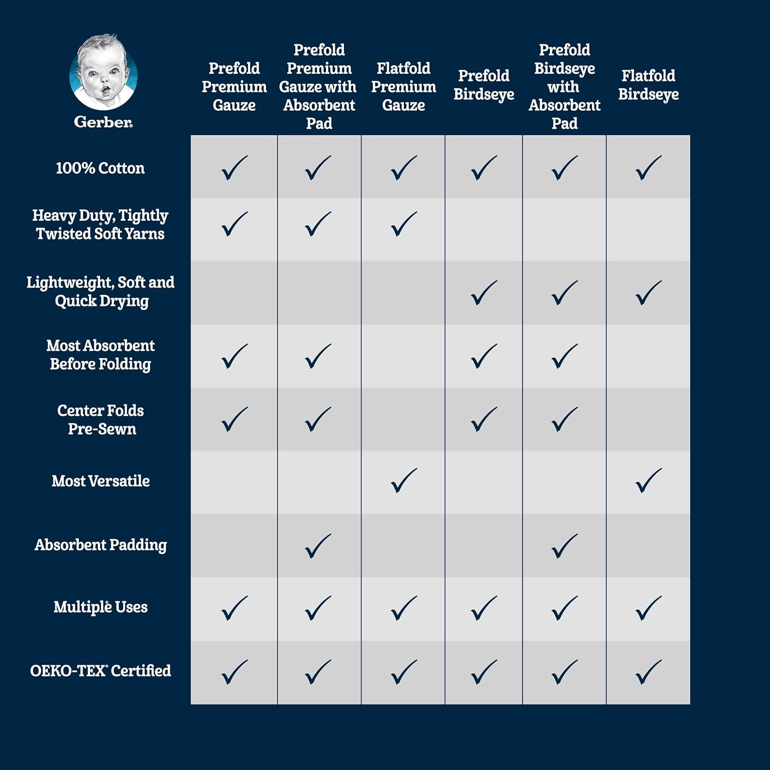 Gerber Unisex Baby Boys Girls Gauze Prefold Cloth Diapers Multipack White 5 Pack