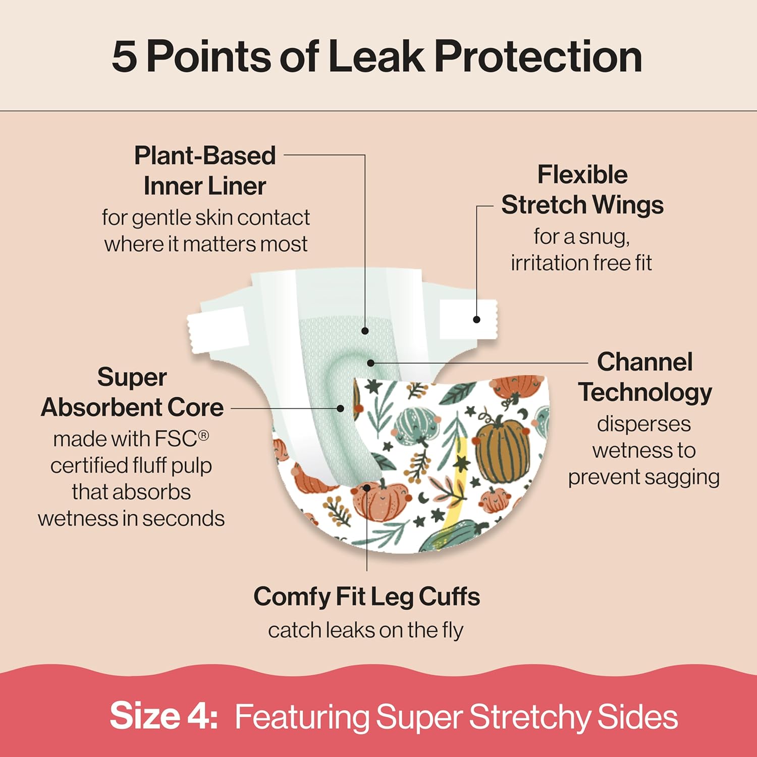 The Honest Company Comfort Dry Disposable Diapers for Sensitive Skin, Hypoallergenic, Fragrance-Free, Fall ’25 Seasonal Prints, Club Box, Size 4 (22-37 lbs), 54 Count